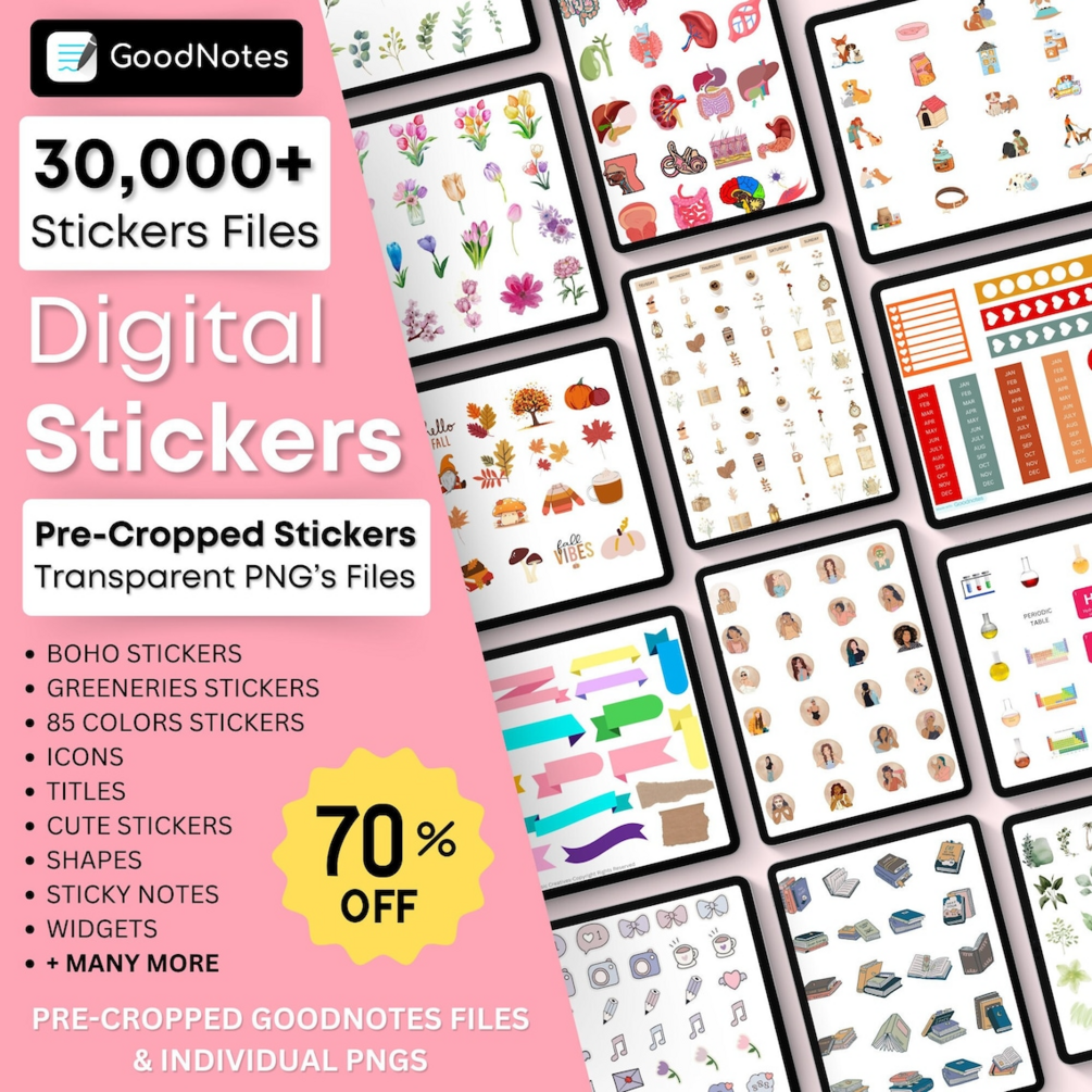 30,000+ Daily Digital Stickers for Goodnotes - PNG Files, Sticky Notes, Icon Stickers, Planner